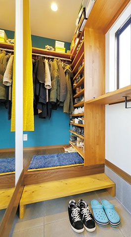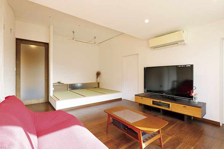 2階建RC造住宅をスケルトンにし、桜の木を望む芝生の庭を愉しめるLDK加え、小上がり畳コーナー、大容量のパントリーや洗濯クローゼット、シュークロークを配しました。
