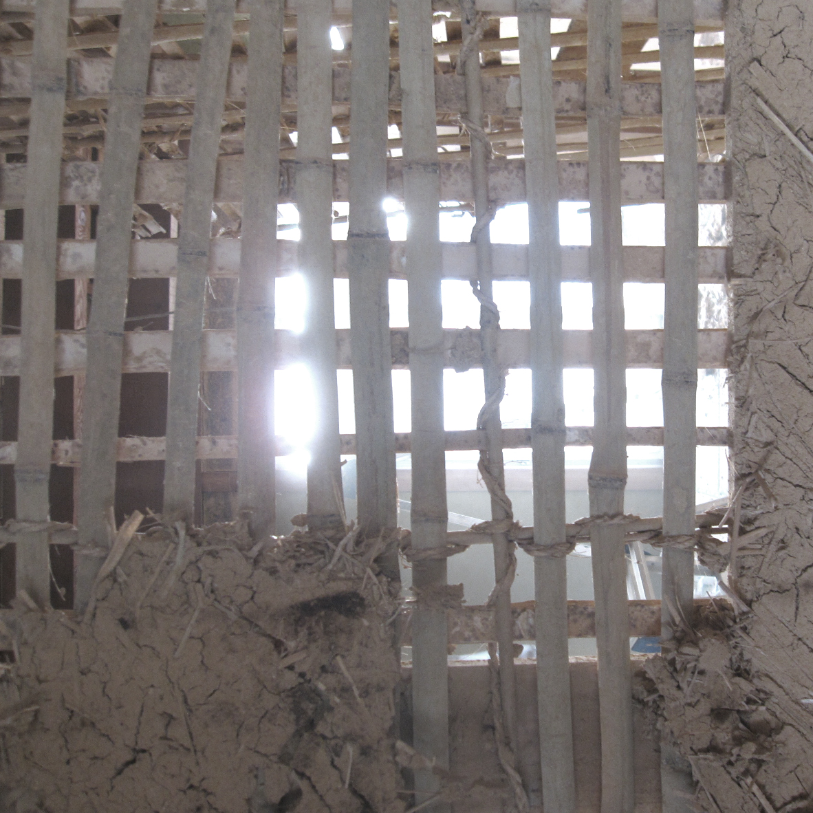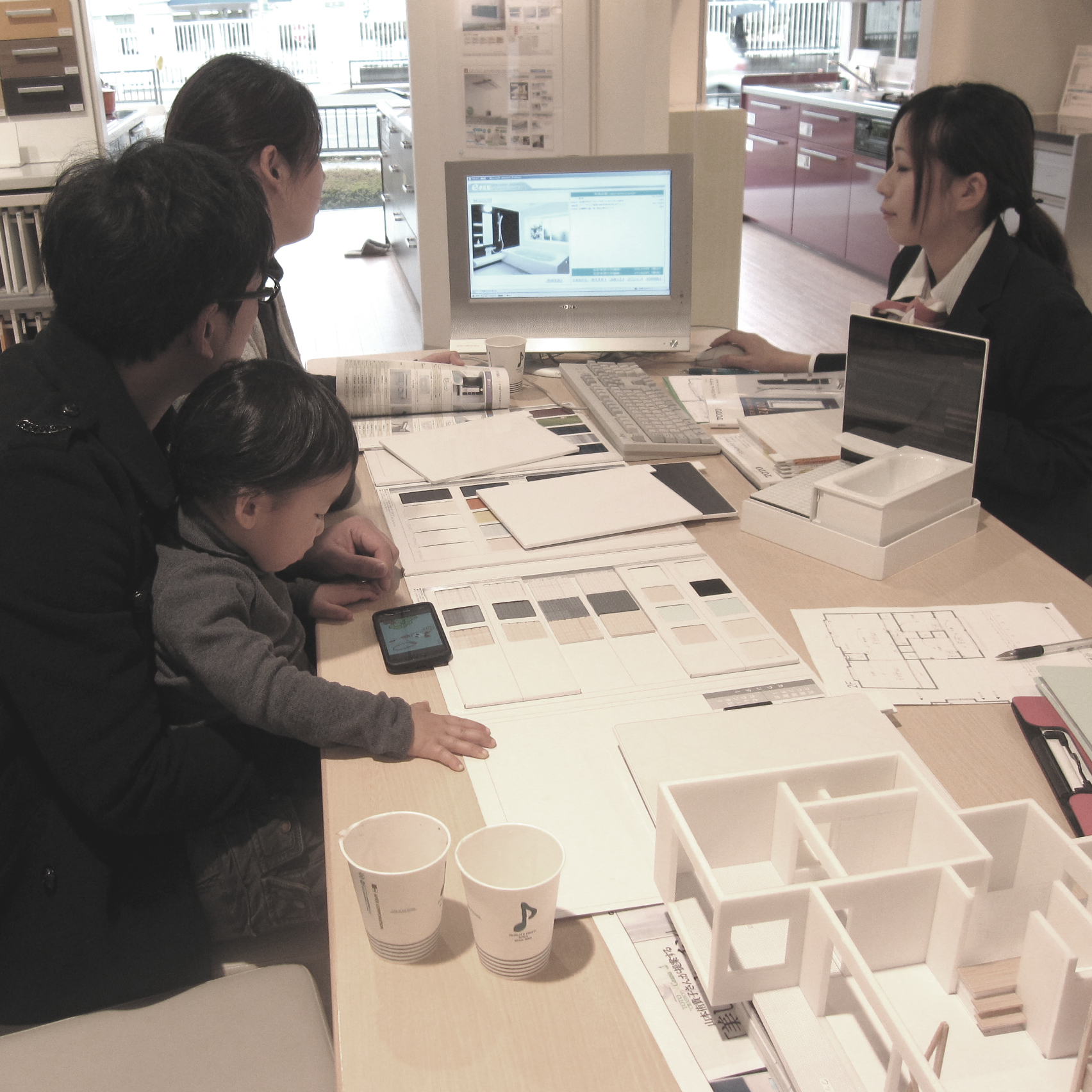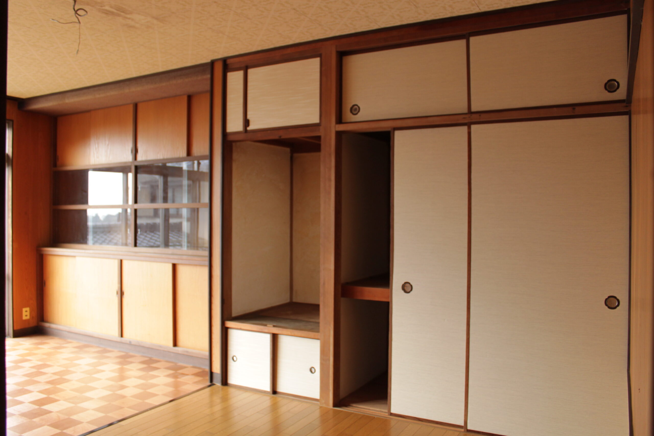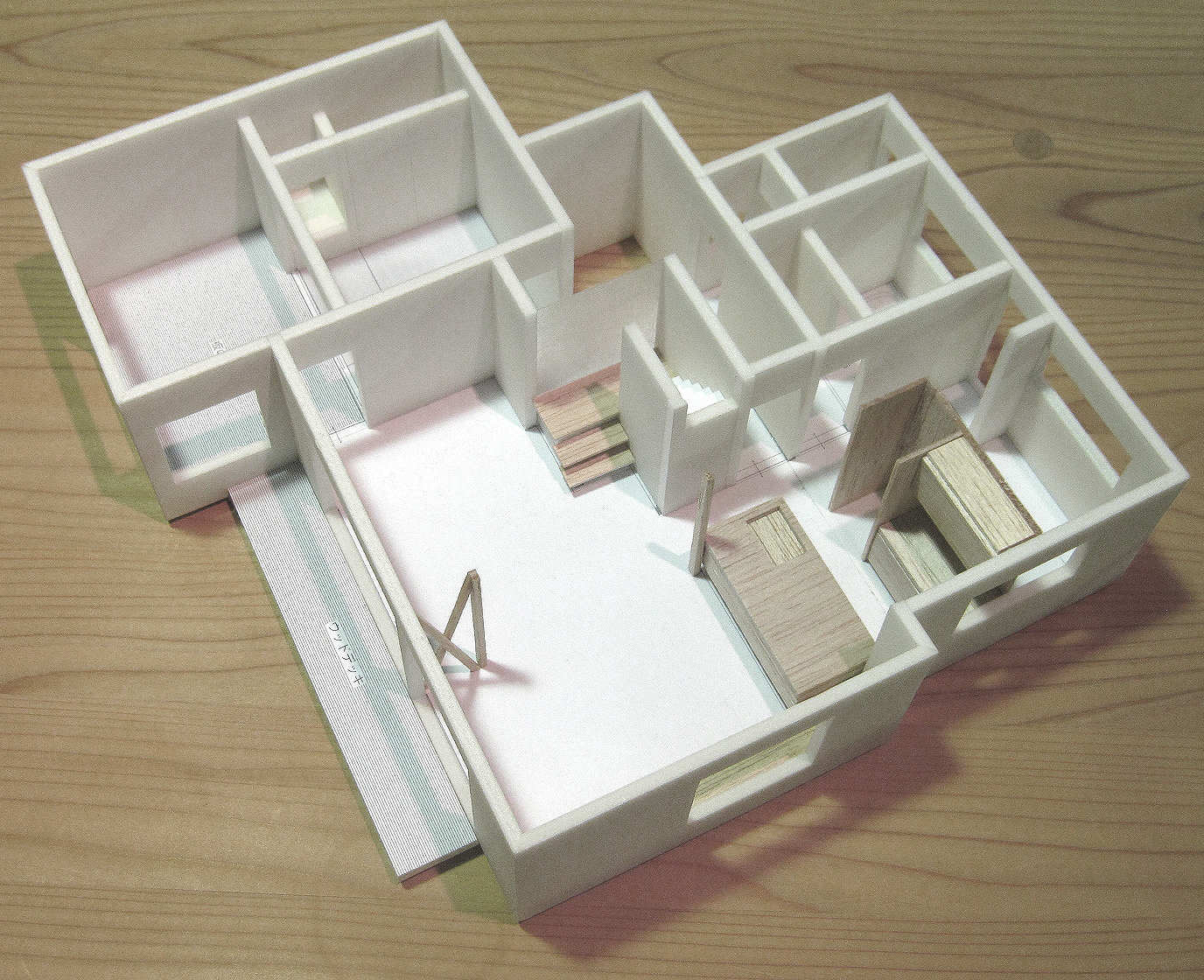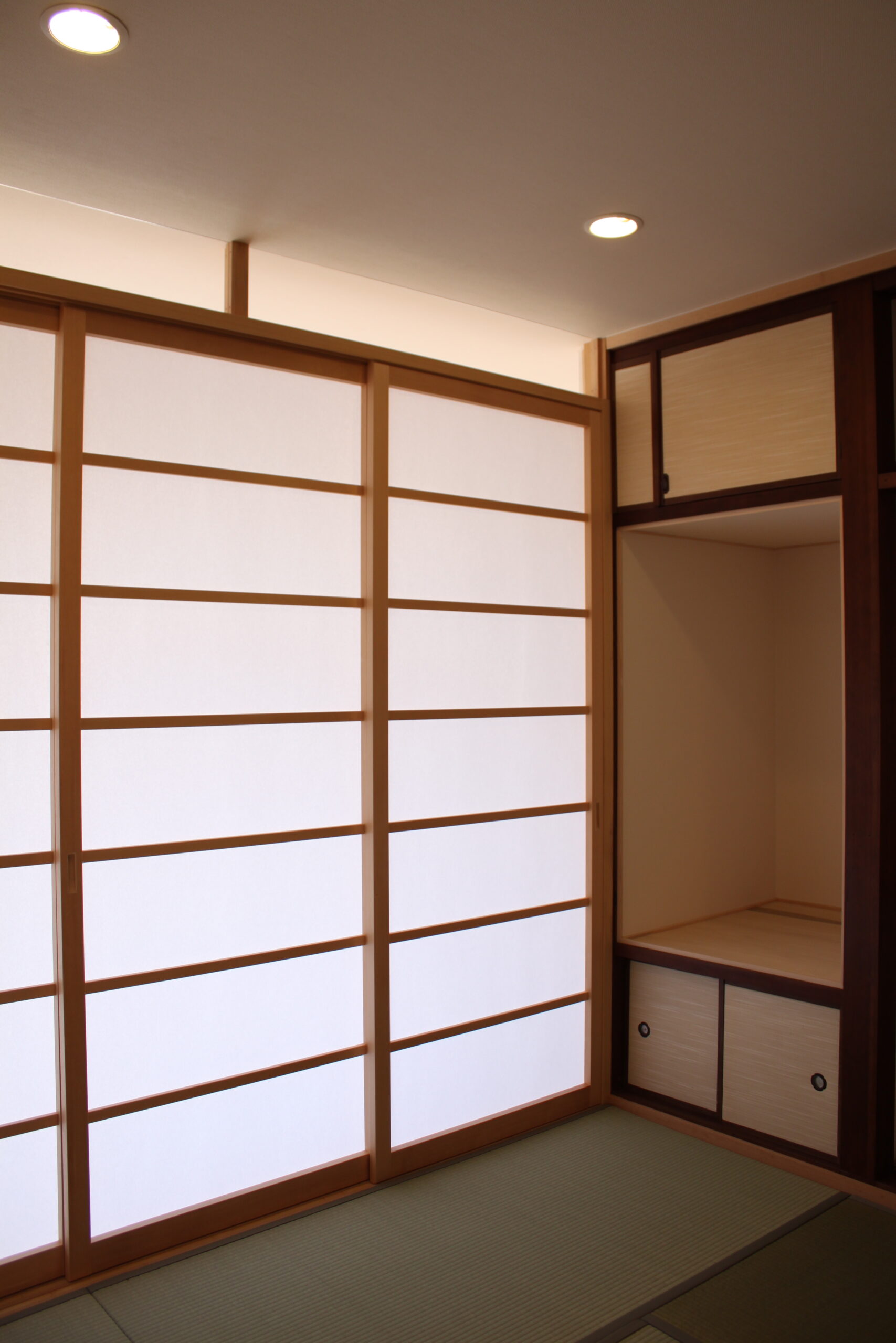 ナラの床材と珪藻土塗りの壁と天井のインテリア。