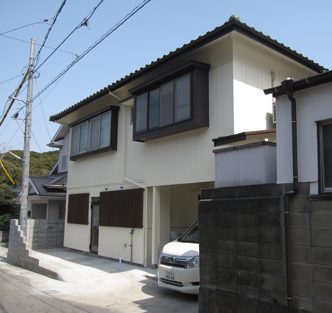 絵本に出てくる家をモチーフに緑色の瓦屋根と外壁の塗り替えをしました。