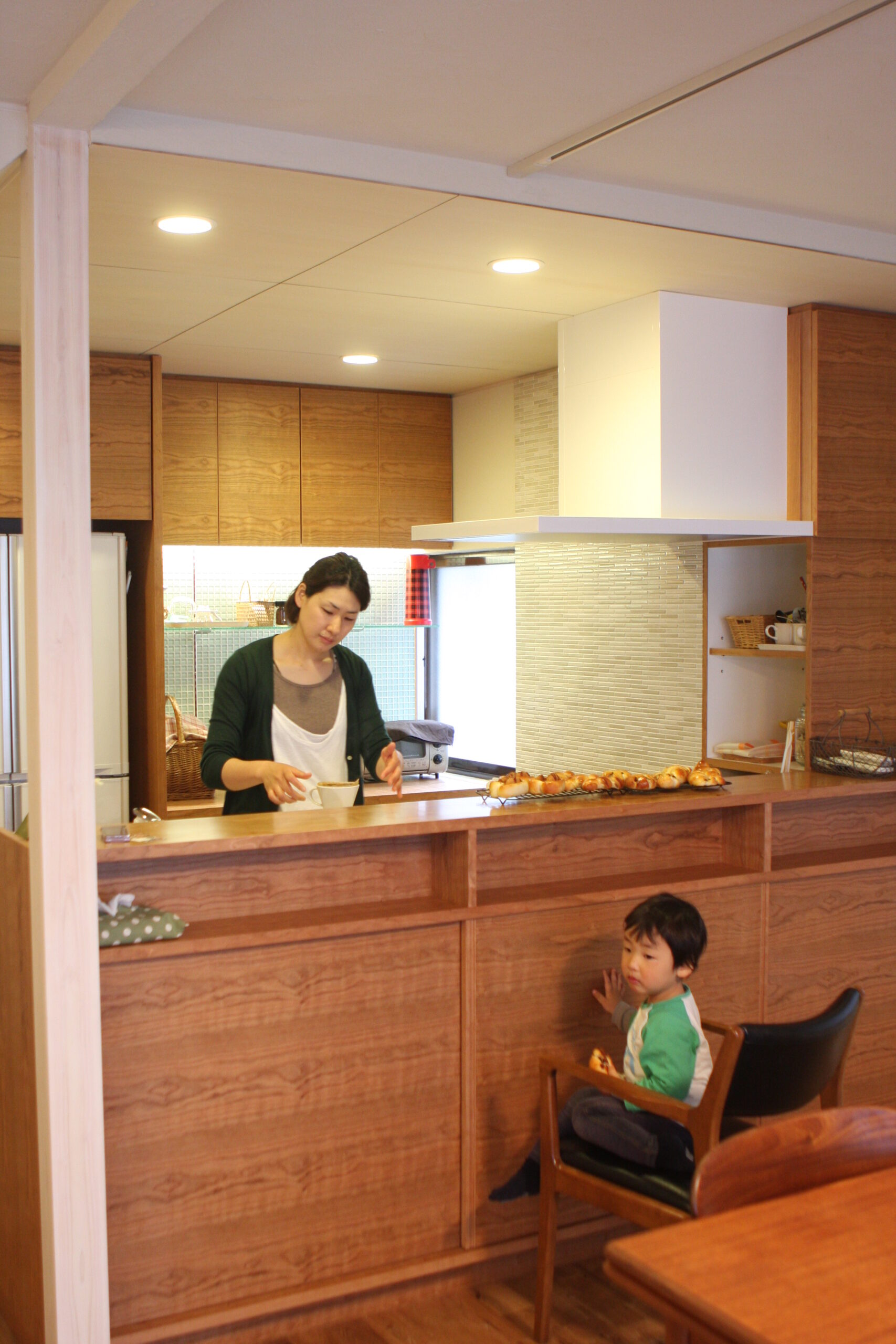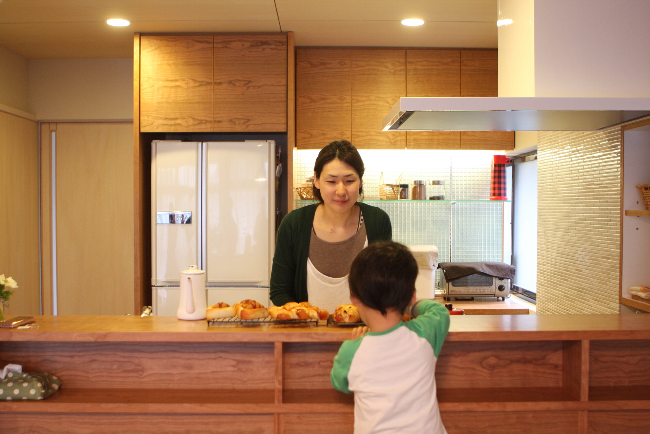 パンづくりの趣味にあわせたオーダーメイドキッチンをブラックチェリー材で家具製作しました。