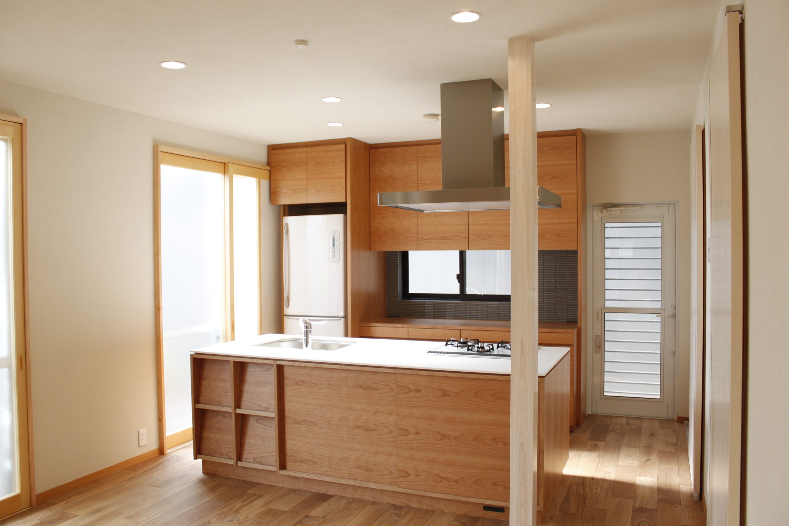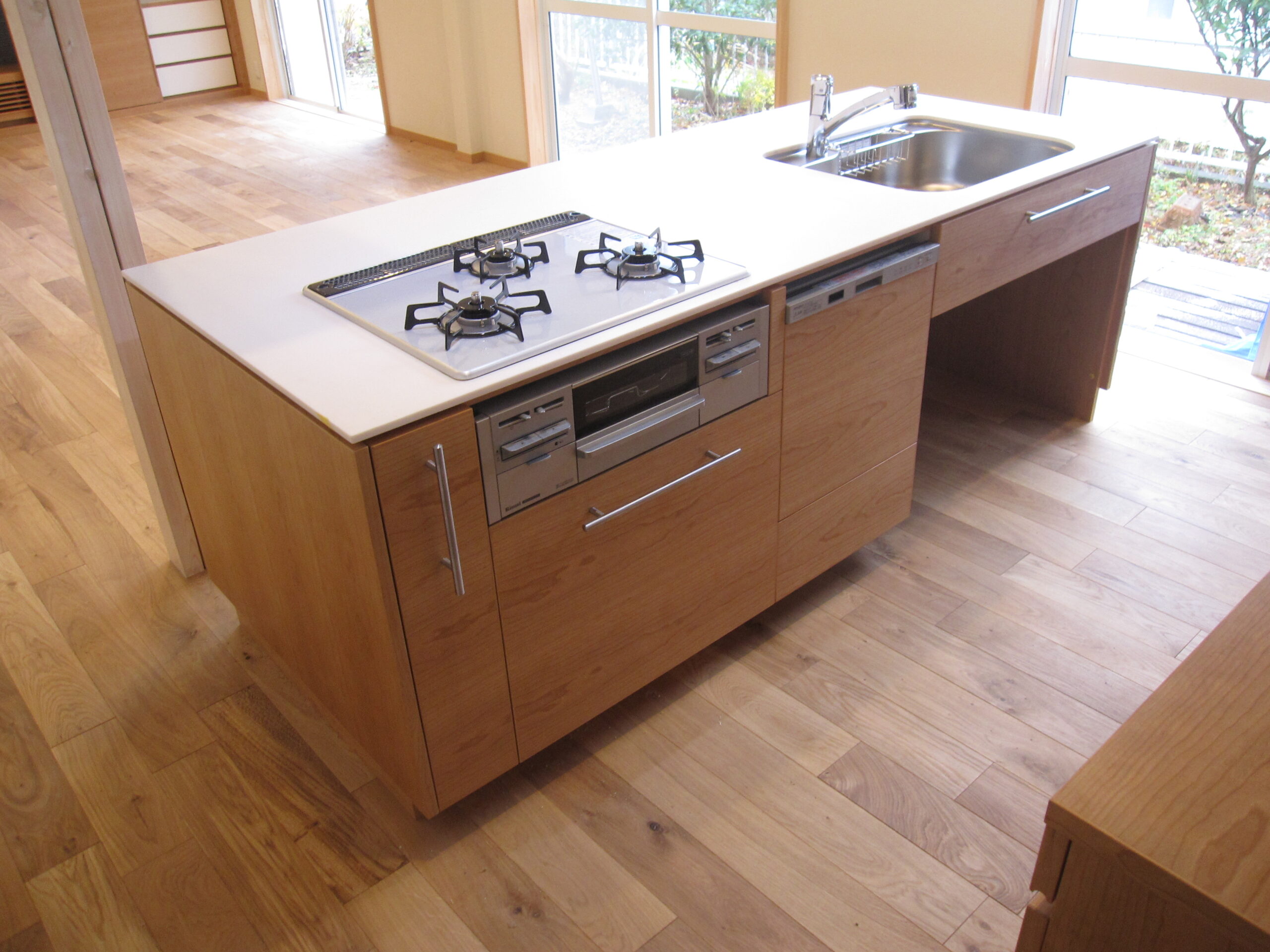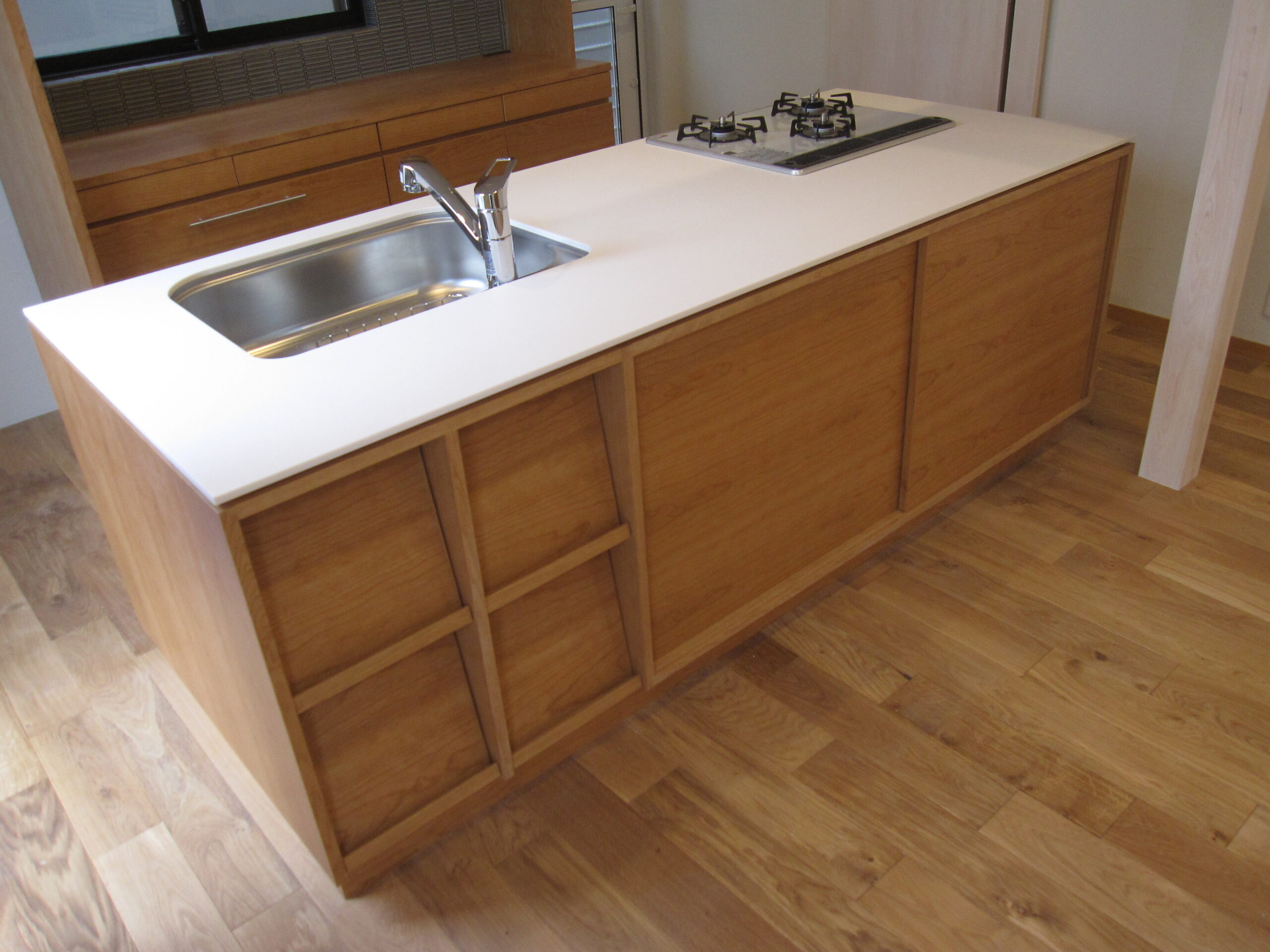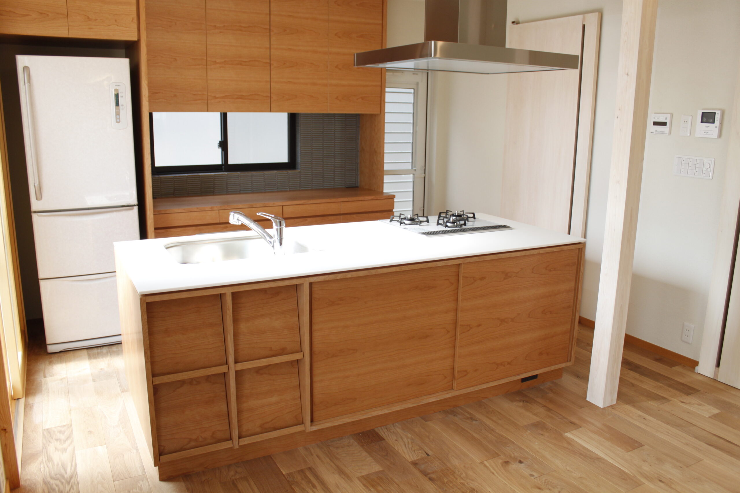 片付けやすい工夫のTVボード収納とオーダーメイドキッチンをブラックチェリー材で家具製作しました。